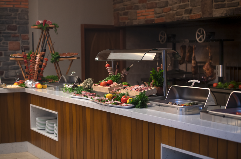 otel açık büfe uygulamaları, premium açık büfe tasarımı, endüstriyel mutfak projeleri, otel mutfak ekipmanları, paslanmaz çelik açık büfe, Lara Açık Büfe,